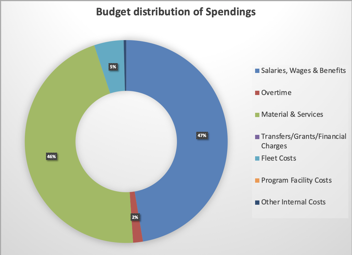Click on graphs to enlarge them. To view or download data, please visit the Bibliography page. The graphs shows the distribution of how the budget is being utilised.
